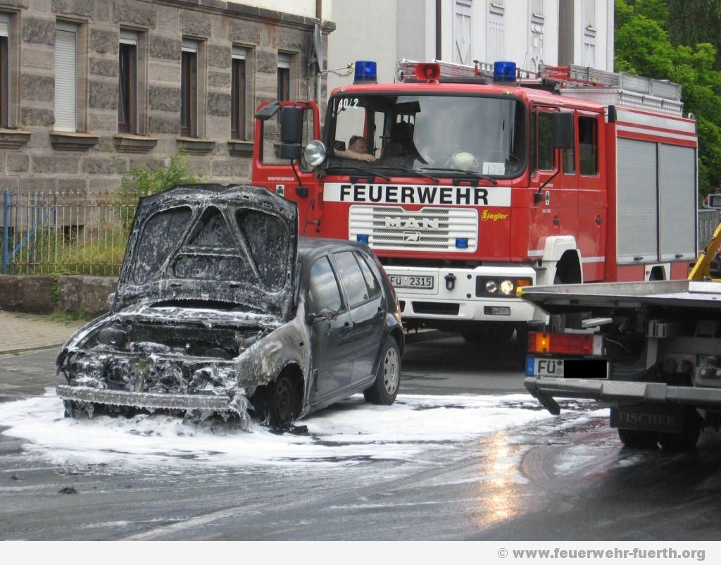 PKW-Brand, Burgfarrnbach 04.07.2013 Am späten Vormittag rückte ein Löschfahrzeug der Berufsfeuerwehr nach Burgfarrnbach in die Würzburger Straße aus, um einen in Brand geratenen PKW abzulöschen. PKW-Brand