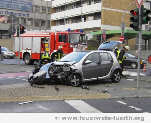 Kurz vor 22 Uhr wurde die Berufsfeuerwehr Fürth zur Zirndorfer Brücke gerufen. Dort durchbrach ein PKW das Brückengeländer und stürzte in den Main-Donau-Kanal. Während der Anfahrt des Rüstzuges war noch nicht klar, ob sich noch Personen in dem PKW befanden.