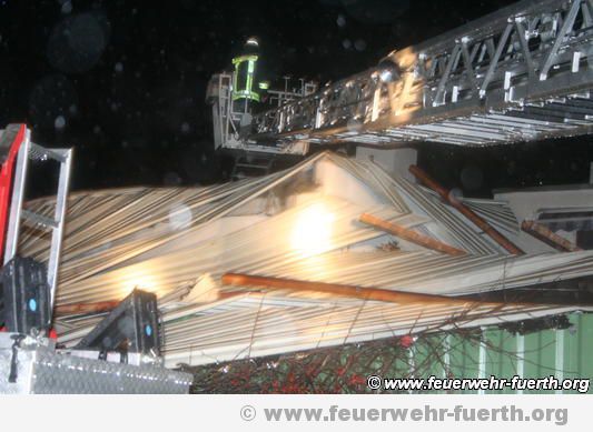 Nach Abschluss der Löscharbeiten und Kontrolle mit der Wärmebildkamera wurde das Dach soweit möglich wieder eingedeckt und mit einer Gewebeplane abgedichtet.