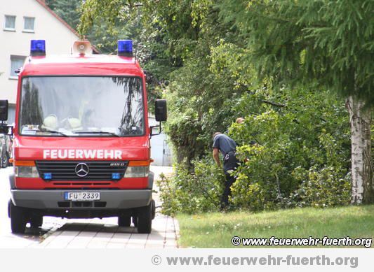 Kurz vor 17 Uhr musste das Klaf der Berufsfeuerwehr Fürth zu einem umgestürzten Baum in die Bienenstraße nach Burgfarrnbach ausrücken.
