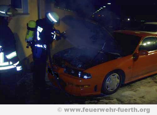 Um 17.30 Uhr rückte der Löschzug zu einem PKW-Brand in die Herrnstraße aus. Beim Eintreffen des Einsatzleiters stellte sich heraus, dass ein PKW gegen ein Haus gefahren war und in Brand geraten ist. Der PKW wurde unter schwerem Atemschutz mit dem Schnellangriff des Löschfahrzeuges 40/1 abgelöscht.