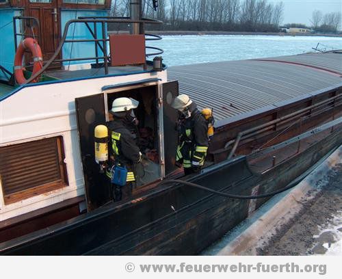 Kurz nach 16 Uhr rückte der erweiterte Löschzug der Berufsfeuerwehr Fürth zu einem gemeldeten Schiffsbrand aus. Der Löschzug bestand aus dem Einsatzleitwagen (10/2), Löschfahrzeugen (40/1 und 40/2), Drehleiter (30/1), Kleinalarmfahrzeug (65/1) und Wasserrettungswagen (91/1).