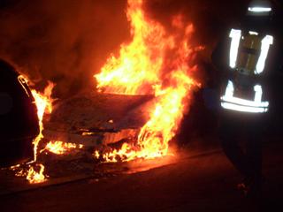 Kurz nach 4 Uhr wurde die Berufsfeuerwehr zu einem PKW-Brand in die Wilhelmshavener Straße gerufen. Zur gleichen Zeit alarmierte die Feuerwehr-Einsatzzentrale auch die ortsansässige Freiwillige Feuerwehr Unterfarrnbach. Beim Eintreffen des Löschzuges der Berufsfeuerwehr einschließlich TLF 24/50 wurde ersichtlich, dass bei dem PKW der Motorraum brannte und die Flammen schon auf den davor geparkten PKW übergriffen. Das Feuer konnte innerhalb weniger Minuten von der Berufsfeuerwehr mit CAFS-Schaum gelöscht werden. Die Freiwillige Feuerwehr musste nicht mehr anfahren. Abschließend wurde noch der auslaufende Kraftstoff mit zwei Mulden (Metallwannen) aufgefangen sowie die Batterien der Fahrzeuge abgeklemmt.